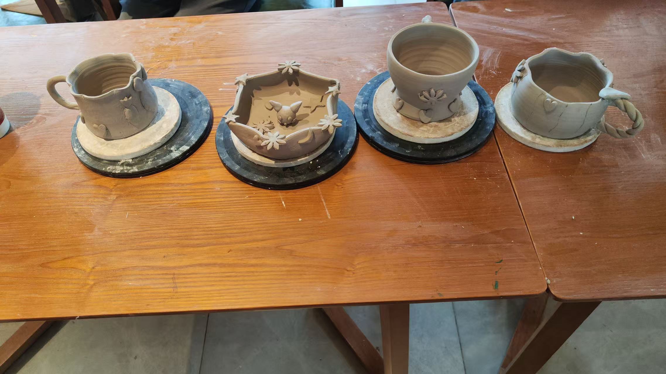 温馨提示:第一次拉坯塑形;第二次干坯上色;出窑后会通知,第三次到店自取成品。
